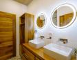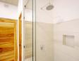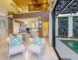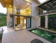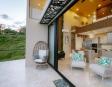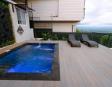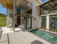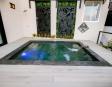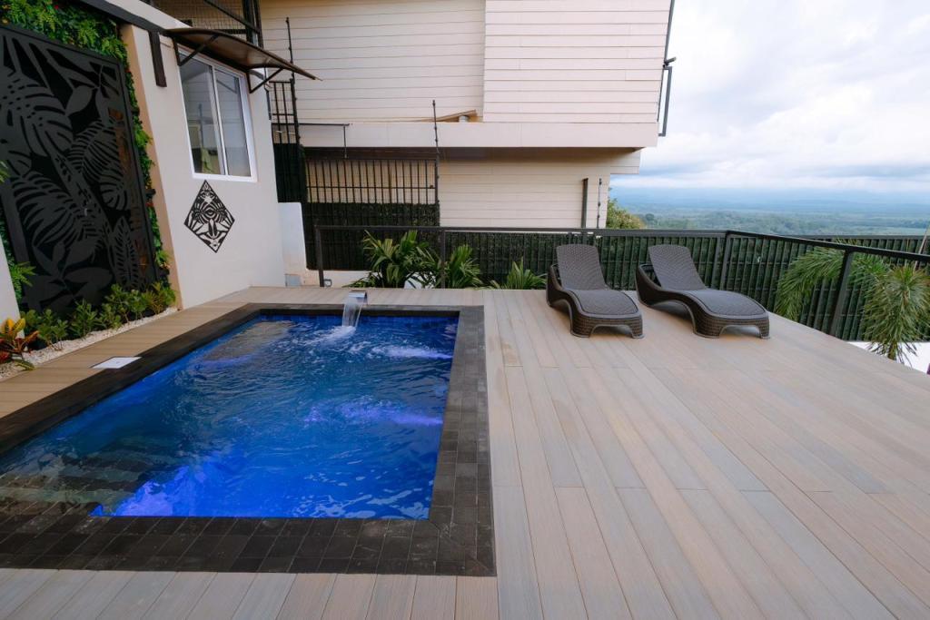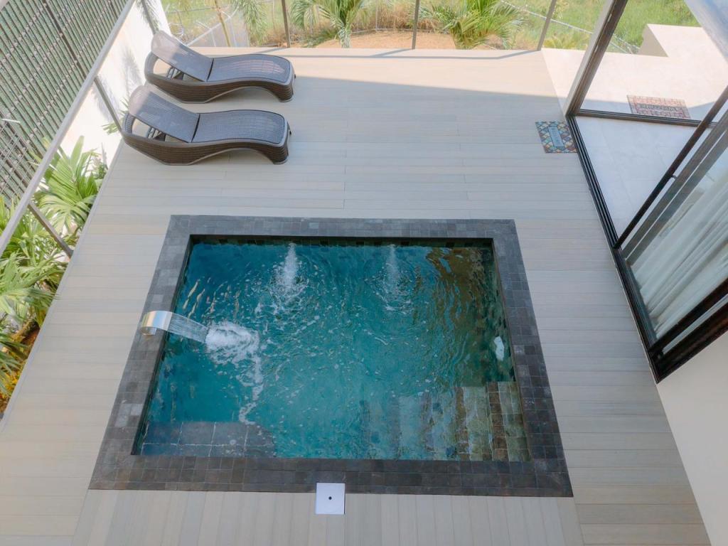 • Piscina privada: Construida en concreto armado y revestida con la exclusiva piedra Sukabumi en tonos verde, gris y negro, que le da un elegante efecto esmeralda al agua, ideal para relajarse con estilo de resort.