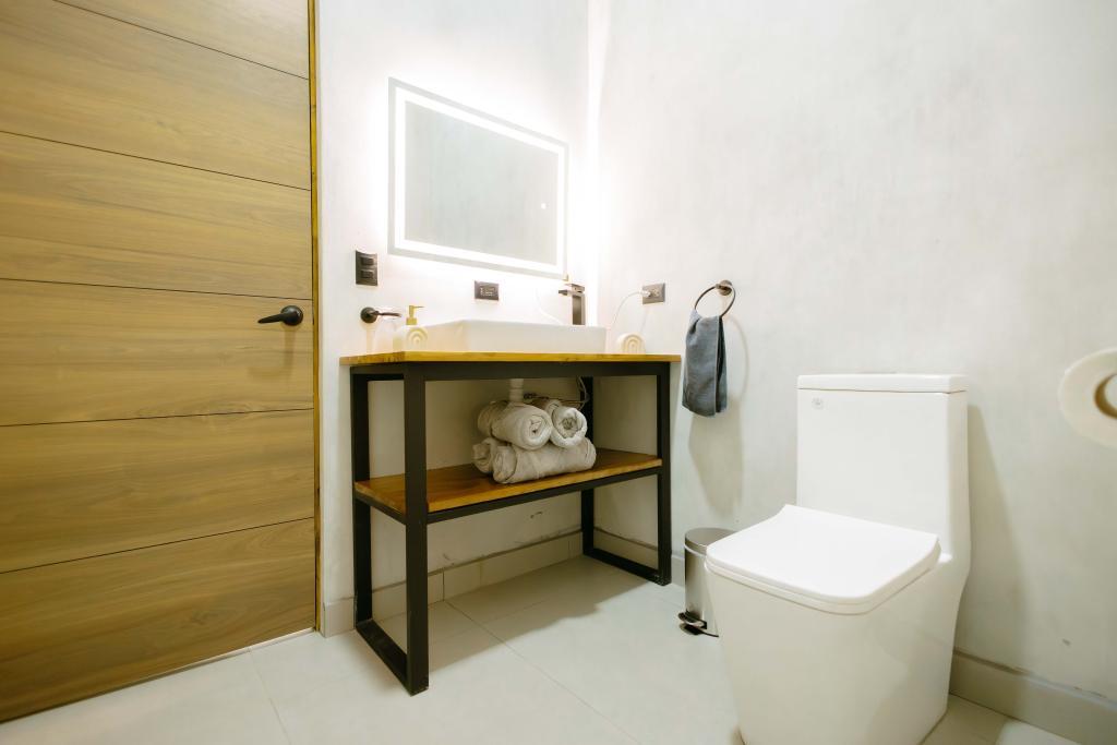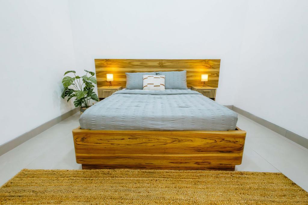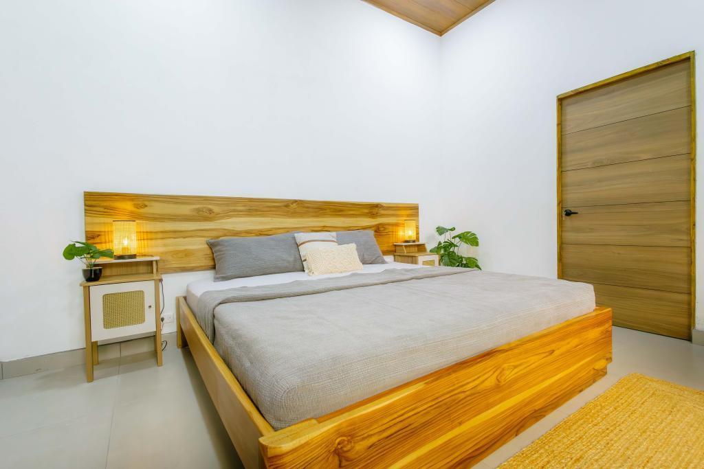 Todos los muebles han sido fabricados a medida con maderas duras locales, aportando calidez, carácter y artesanía costarricense auténtica.