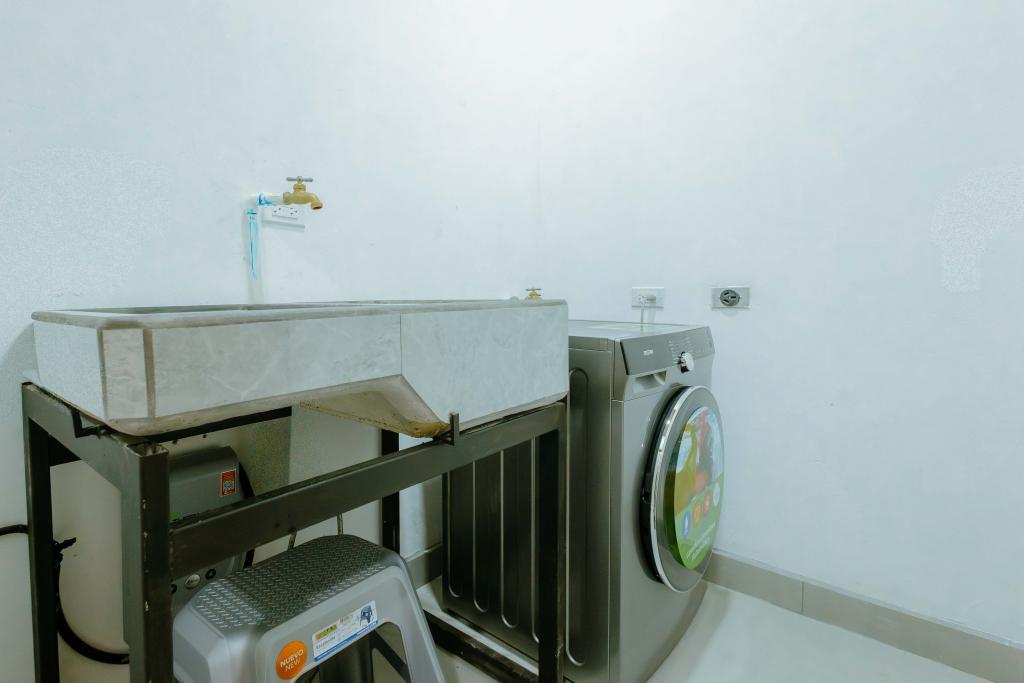 En la parte posterior encontrarás almacenamiento cubierto adicional, con potencial de expansión futura. Actualmente alberga el cuarto técnico de la piscina y tanque de reserva de agua.