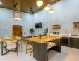 La cocina es un espacio perfecto para recibir: encimeras de cuarzo blanco, isla central de madera con tomas eléctricas integradas y amplio espacio de preparación y convivencia.