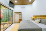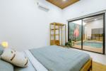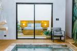 La suite principal es un verdadero santuario: cama king con vista a la piscina, baño en suite privado y detalles de lujo.