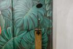 La puerta principal es una obra de arte con sistema de apertura digital (tarjeta, código o llave), ofreciendo una llegada elegante y segura.El interior destaca por sus techos altos y una pared completa de puertas plegables que conecta sin interrupciones el espacio interior con el exuberante patio tropical.