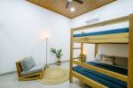 El tercer dormitorio cuenta con litera doble (dos camas matrimoniales), con capacidad cómoda para hasta 8 personas – perfecto para familias o alquileres vacacionales.